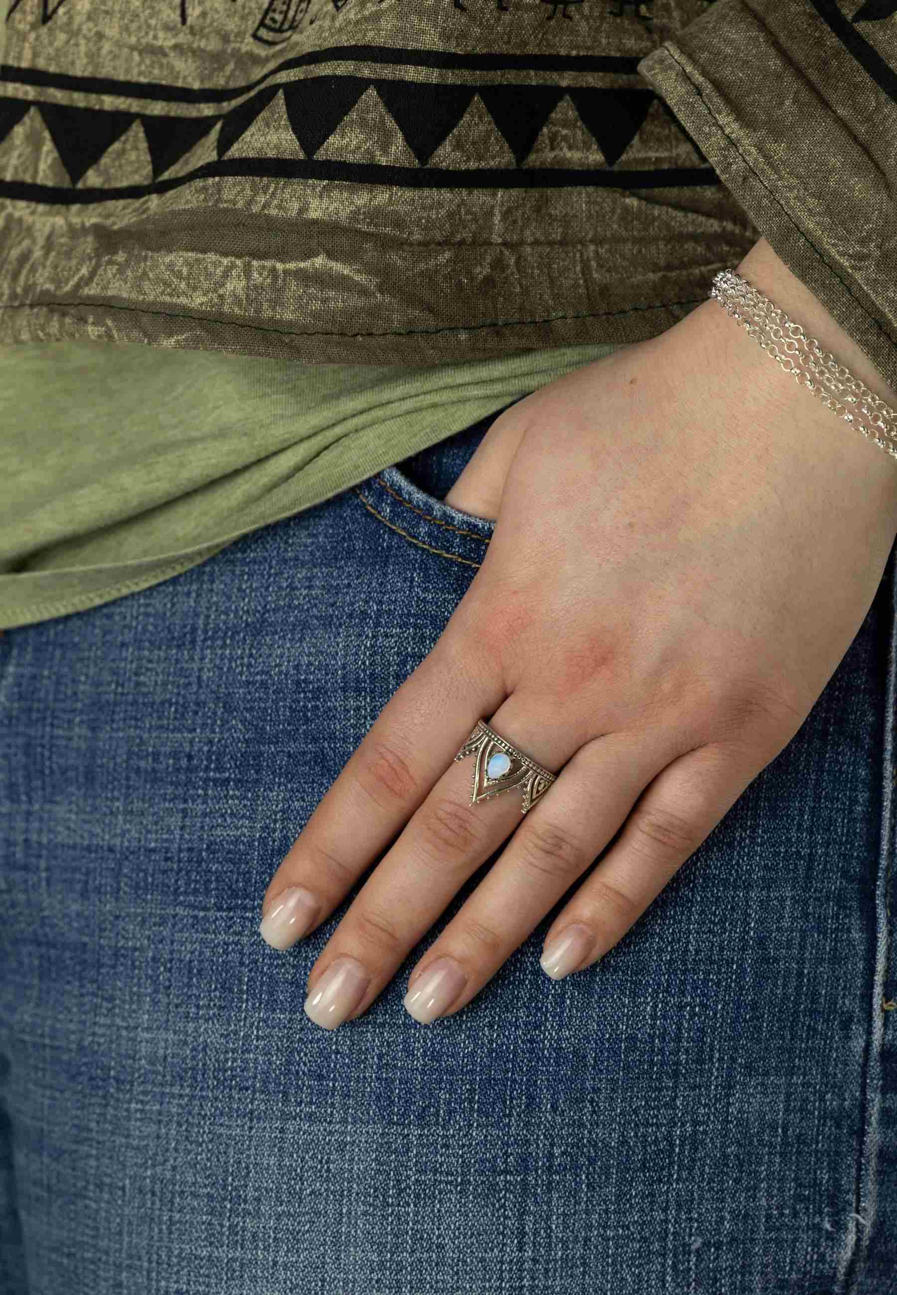 Das romantische, verspielte Design dieses Ringes wertet jedes Outfit auf. Sie können den Ring im Alltag, aber auch zu Feiern, wie Hochzeiten, Geburtstagen usw. tragen. Der Schmuck ist auch ein schönes Geburtstagsgeschenk, Weihnachtsgeschenk, Geschenk zum Jahrestag, zum Valentinstag, oder ‚einfach nur so‘. Sie erhalten den Schmuck in einem kleinen Stoffbeutel.BITTE BEACHTEN SIE: Bei den verwendeten (Halb-) Edelsteinen handelt es sich um einzigartige Naturprodukte.